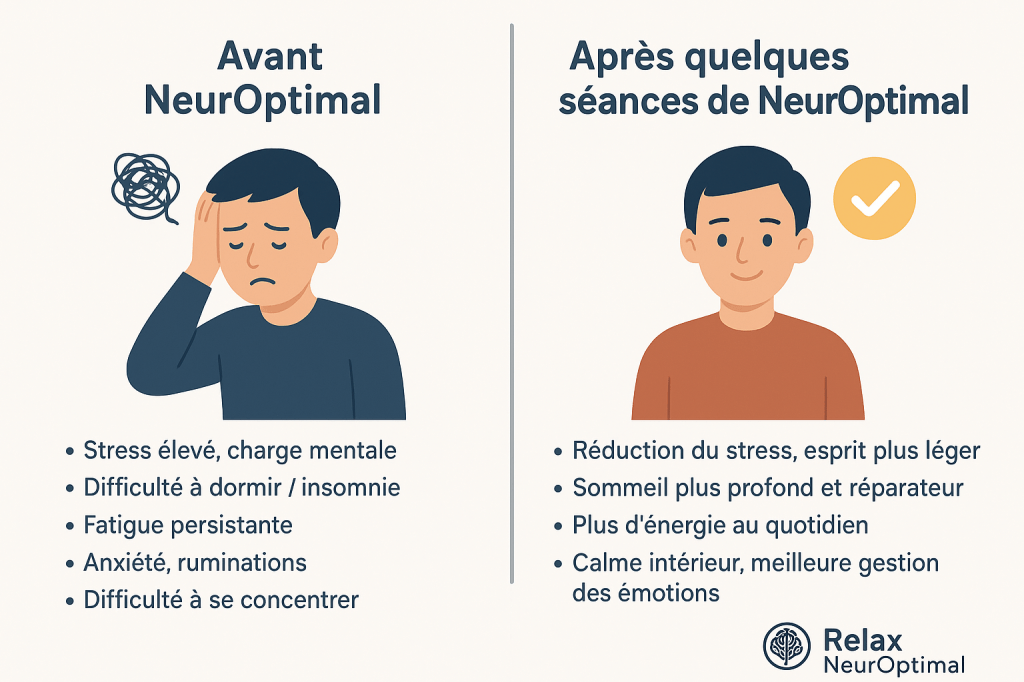 Le neurofeedback peut aider à renforcer la confiance en soi, la clarté mentale, et la stabilité émotionnelle. Les utilisateurs rapportent souvent un sentiment de “retrouver leur véritable personnalité” et de mieux gérer leur quotidien.